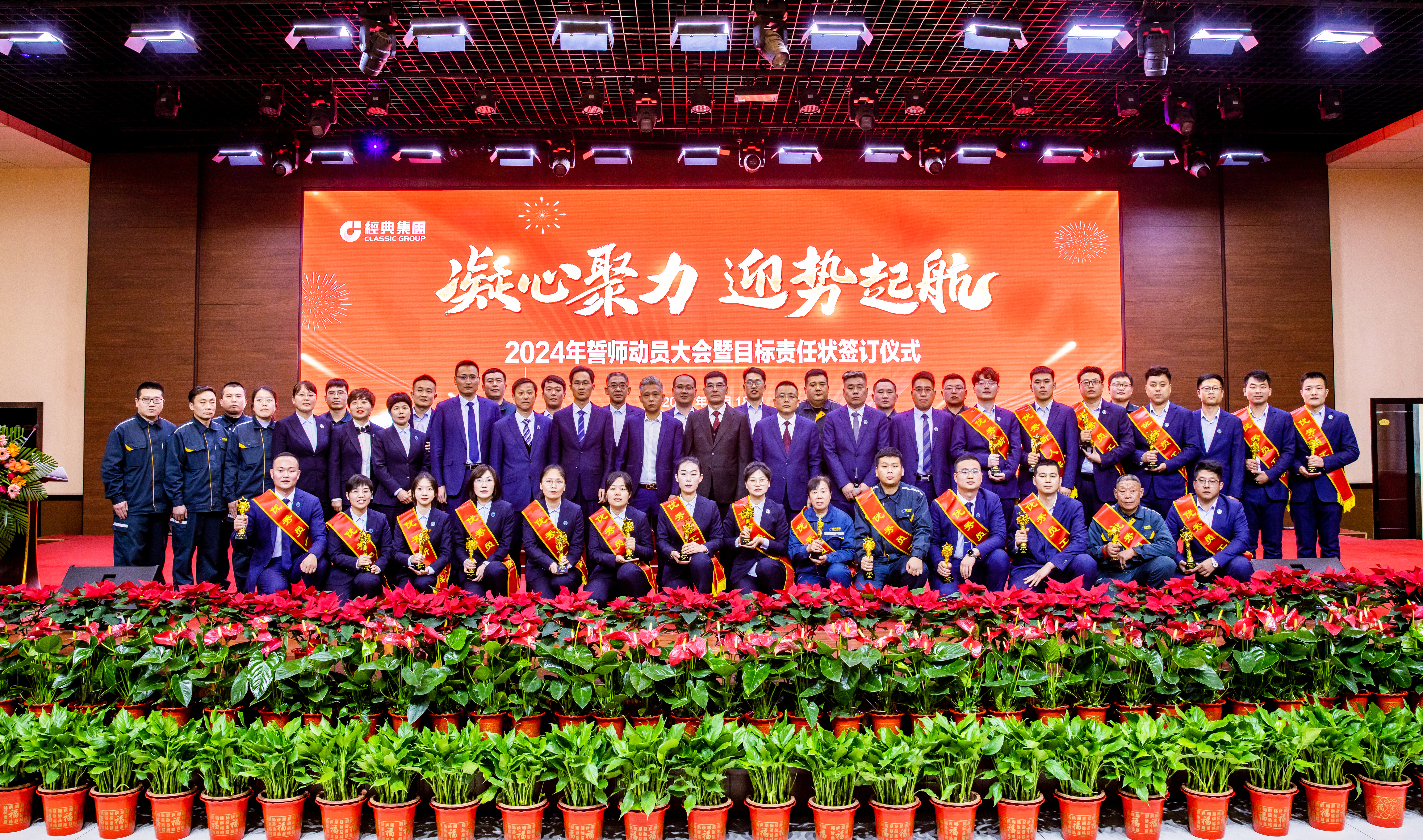 經典集團2024年誓師動員大會暨目標責任狀簽訂儀式成功召開,拉開新一年奮斗序幕。
