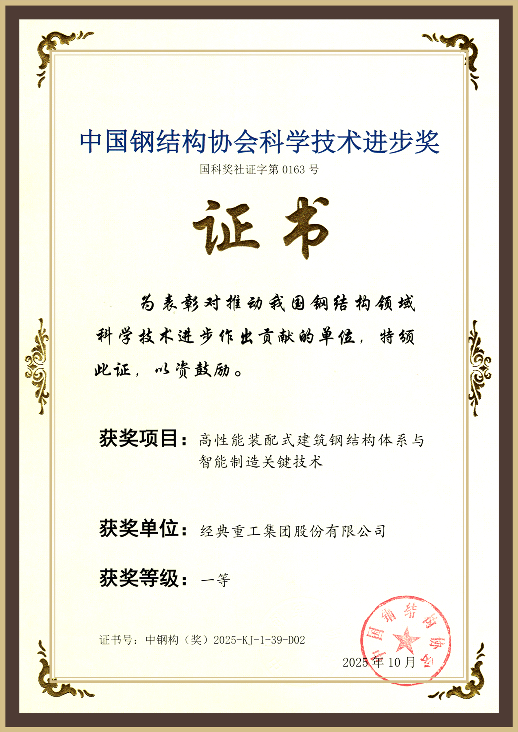 經典集團在中國鋼結構協(xié)會成立四十周年紀念大會上榮膺“卓越貢獻獎”,彰顯卓越貢獻與影響力。