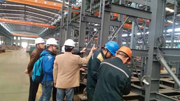 李元齊教授一行深入到經典集團一線制造車間,實地考察了中國核工業平臺制造情況,聽取了有關負責人介紹,查看了工程設計方案,了解了項目的制造工藝。李元齊教授對經典集團重視人才和技術改造、嚴格執行制造流程標準、實施精細化管理給予高度評價,并對鋼結構建筑項目的設計研發工作提出了寶貴的意見和建議。