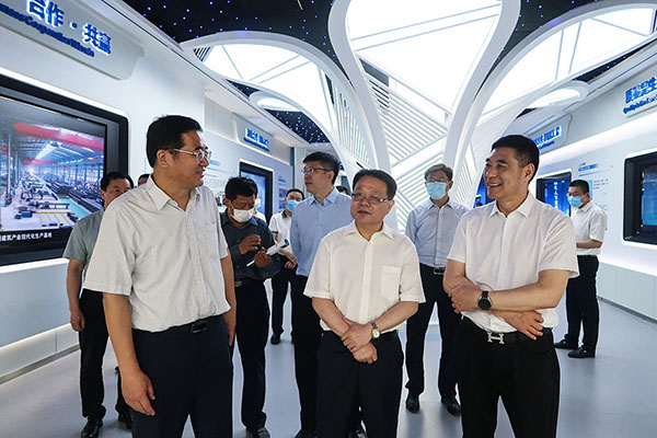 5月31日,濟寧市市委常委、副市長王宏偉帶領濟寧市2022年上半年重點產業項目專項觀摩會與會人員,到經典集團觀摩中冶經典智能綠色建筑新材料生產線改造項目。