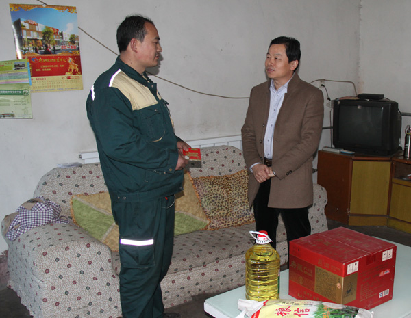 每到一戶,集團(tuán)領(lǐng)導(dǎo)與職工家屬親切握手,面對面促膝交談,了解職工的家庭收入、子女入學(xué)、生活實(shí)際困難情況。送去大米、面粉、食用油等生活物資及600元公司慰問金,集團(tuán)領(lǐng)導(dǎo)鼓勵(lì)職工振奮精神,充滿信心,相信集體,克服眼前困難。
