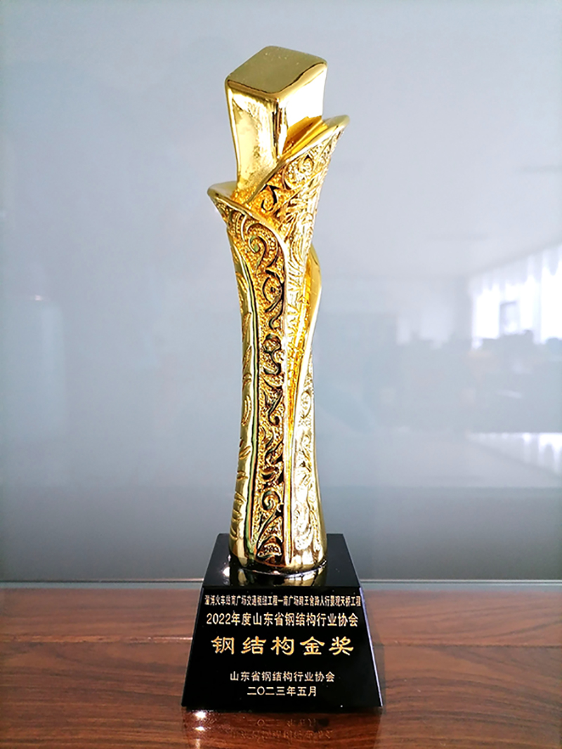 6月16—18日在環渤海地區鋼結構行業發展峰會暨山東省鋼結構行業協會年會上,山東經典重工集團股份有限公司承建的淄博火車站南廣場交通樞紐工程——南廣場跨王舍路人行景觀天橋工程榮獲2022年度山東省鋼結構協會鋼結構金獎。