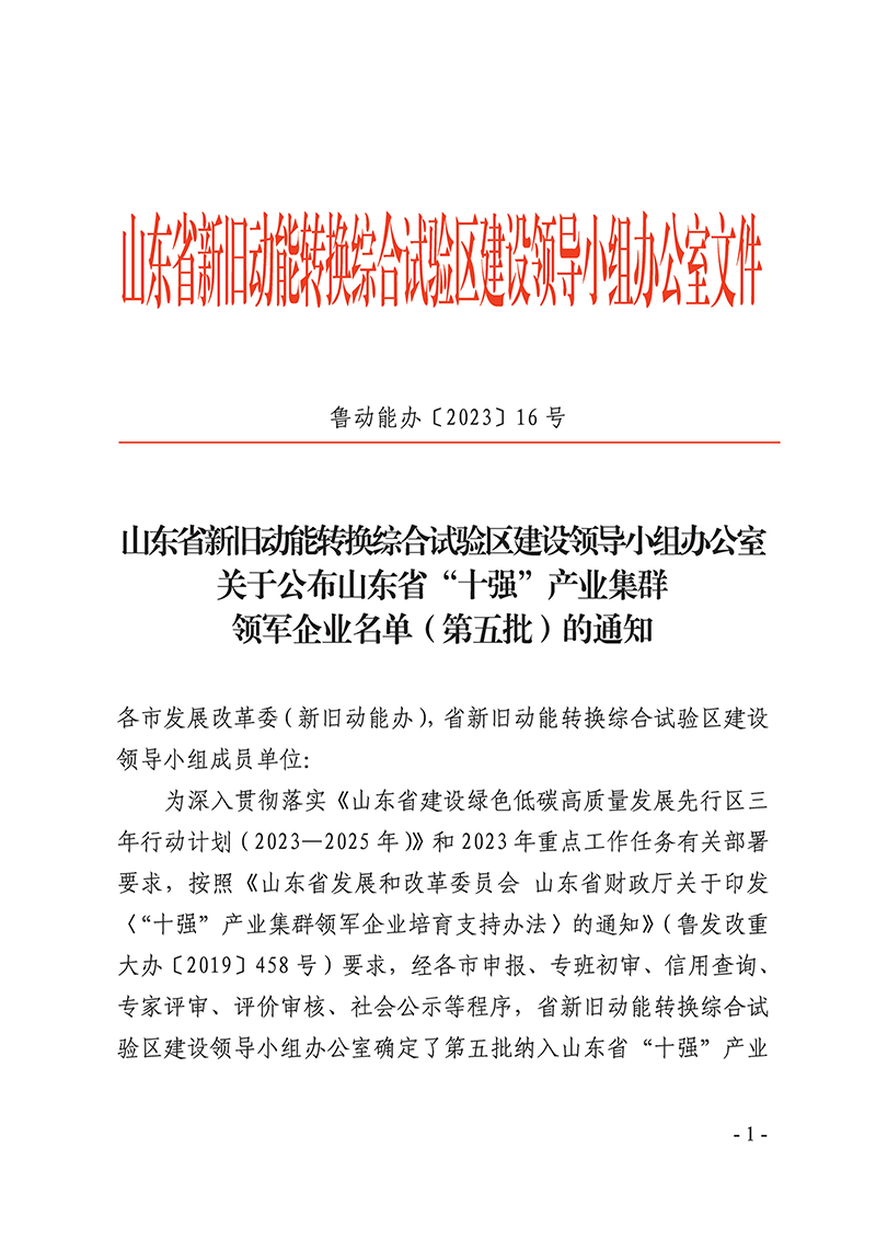 6月19日,山東省新舊動能轉(zhuǎn)換綜合試驗區(qū)建設(shè)領(lǐng)導(dǎo)小組辦公室發(fā)布了《關(guān)于公布山東省“十強”產(chǎn)業(yè)集群領(lǐng)軍企業(yè)名單(第五批)的通知》(魯動能辦【2023】16號),山東經(jīng)典重工集團股份有限公司成功入選山東省“十強“產(chǎn)業(yè)集群領(lǐng)軍企業(yè)名單。