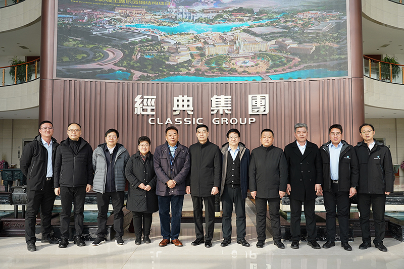 2月17日,中國鋼結構協會圍護系統分會、中國建筑防水協會金屬屋面技術分會輪值會長多躍剛,常務副會長尹敏達,秘書長蔡昭昀,教授級高工朱勇軍、束偉農一行到經典集團調研。