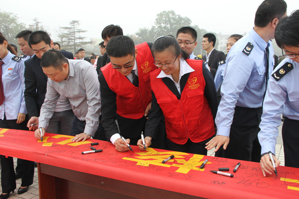 9月19日,經典集團組織30名志愿者參加在九州廣場舉辦的兗州區弘揚社會正能量踐行核心價值觀暨千名志愿者啟動儀式。兗州區委常委、宣傳部長初建偉,人大副主任張華,政府副區長王仁娜,政協副主席劉春等領導出席啟動儀式。